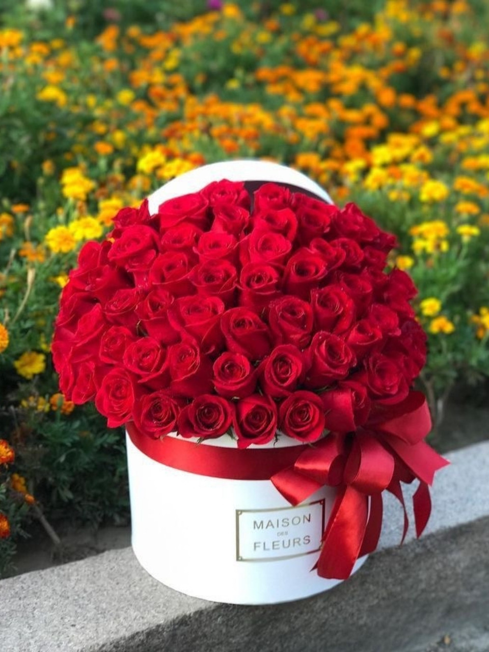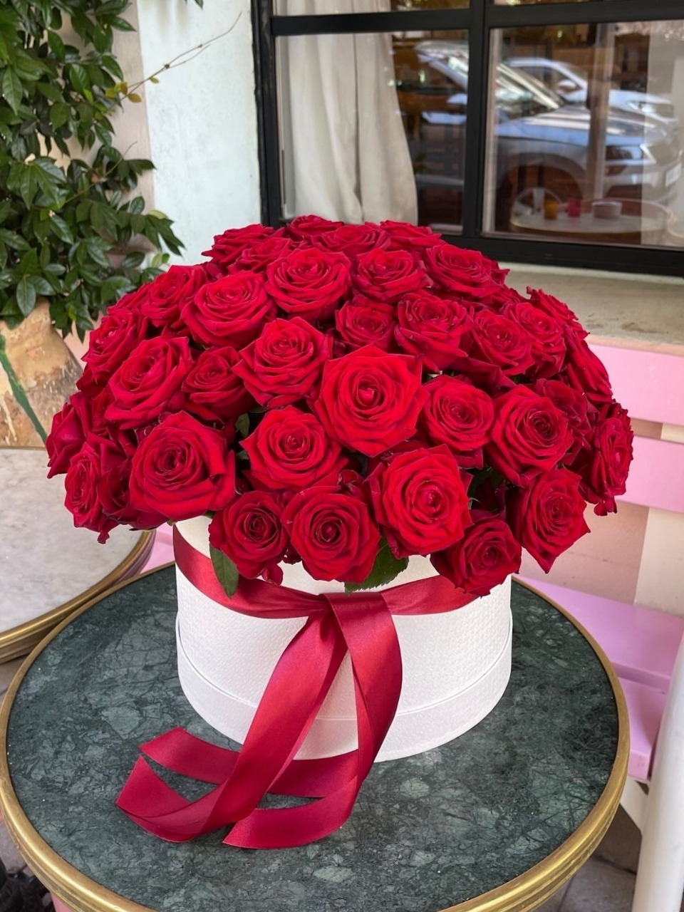 Grand coffret blanc entièrement rempli de fleurs rouges éclatantes, pour un cadeau élégant et passionné.