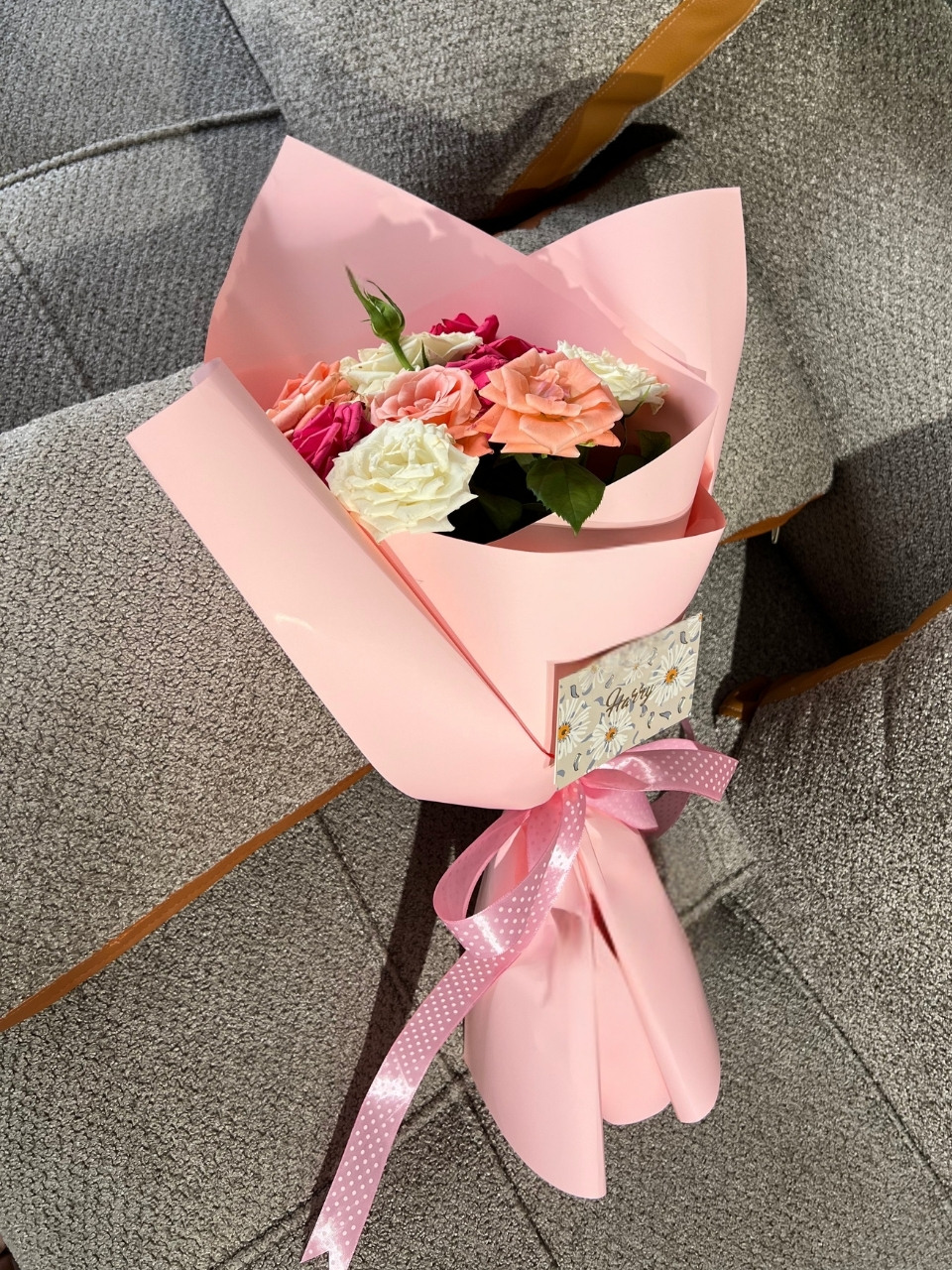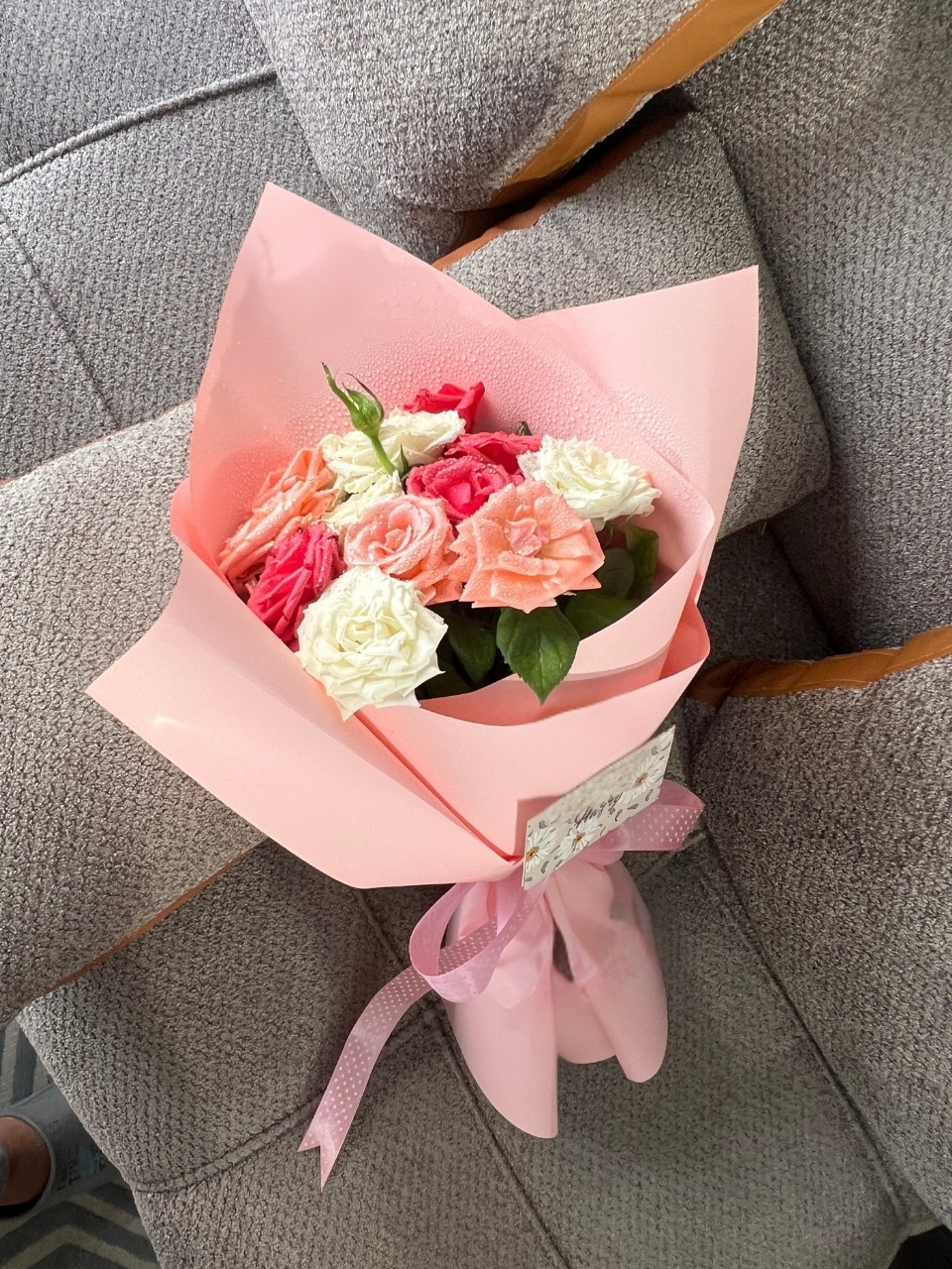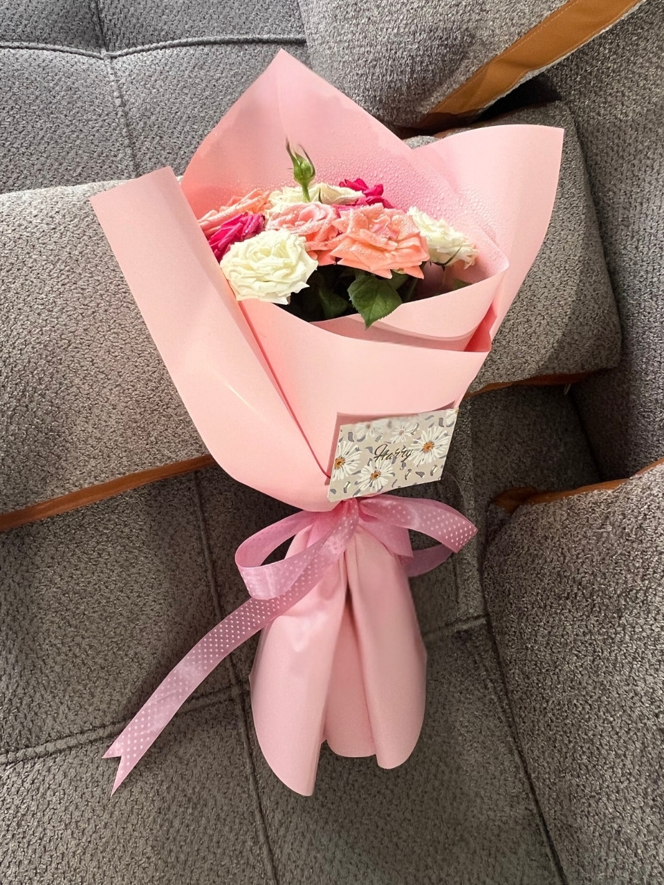 Bouquet naturel aux tons tendres, aussi léger qu’un souffle d’amour. Un vrai rêve fleuri.