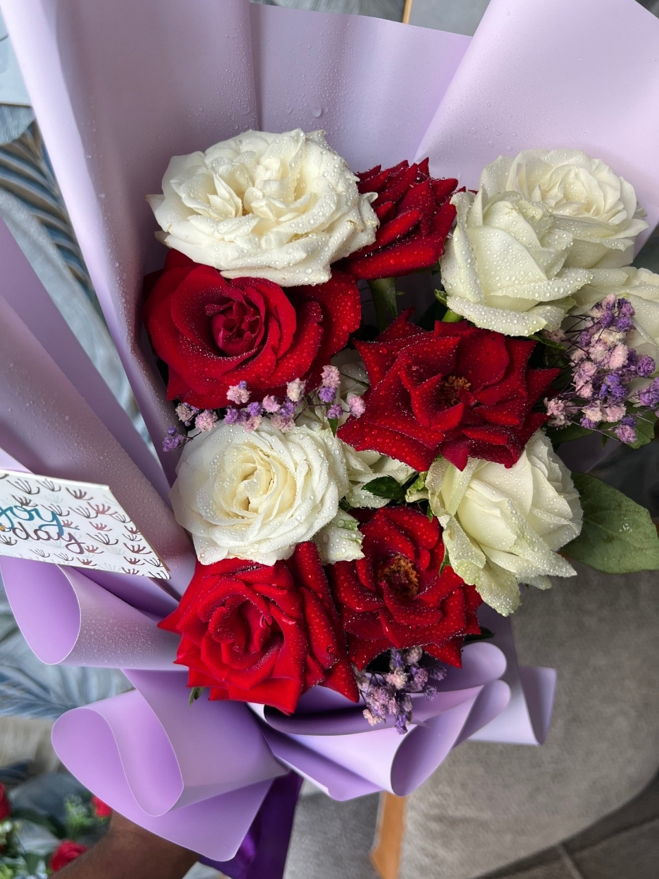 Un bouquet léger où le blanc et le mauve se rencontrent harmonieusement.
